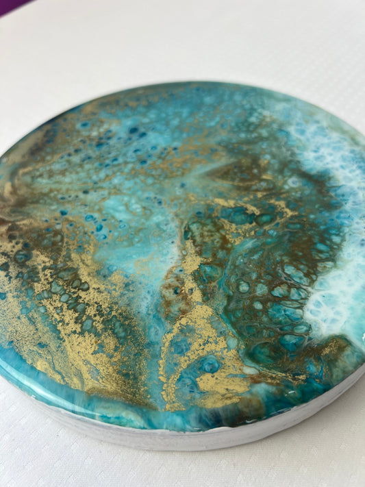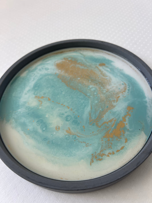 Tacka ozdobna gipsowa z żywicy złoto/akwamaryna