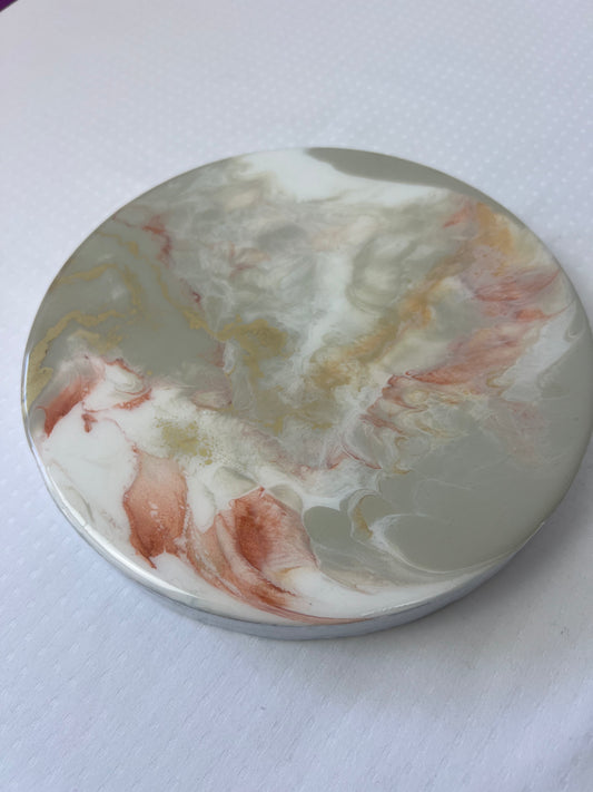 Tacka ozdobna z żywicy rose gold/biel+kryształy